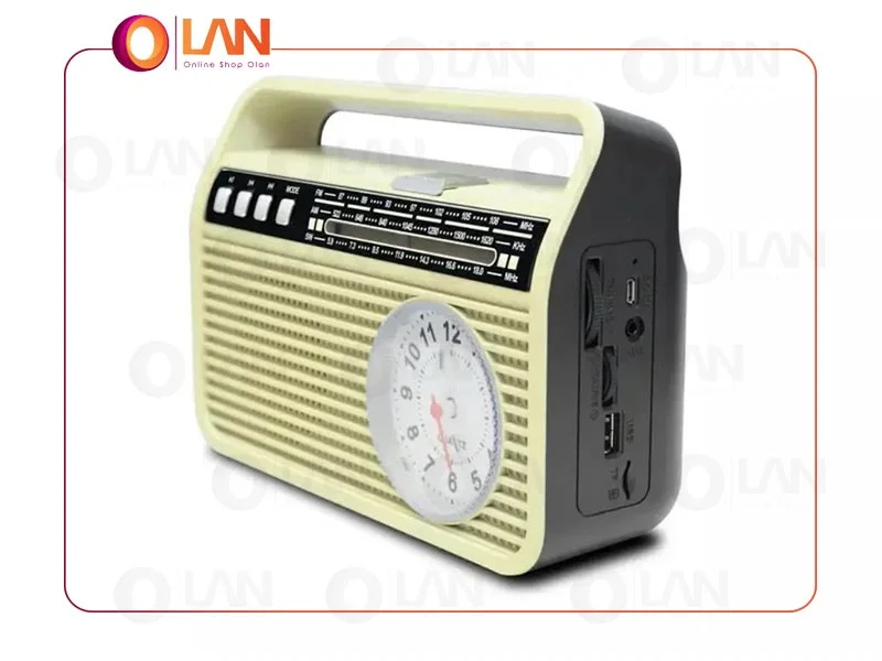 طراحی کلاسیک و نوستالژیک از ویژگی های رادیو اسپیکر می باشد که با ظاهری زیبا و جذاب با الهام از گذشته حس خوبی را به شنونده می دهد. همچنین کیفیت صدای بی نظیر که صدایی واضح، شفاف و قدرتمند با توان 5 وات را به ارمغان می آورد. گیرنده رادیویی حرفه ای AM/FM/SW که دریافت طیف گسترده ای از ایستگاه های رادیویی را امکان پذیر می کند. پشتیبانی از اتصال بلوتوث یکی از بهترین ویژگی های آن است، زیرا اتصال آسان به دستگاه های هوشمند و پخش موسیقی بی سیم را امکان پذیر می کند. قابلیت پخش از USB و کارت حافظه TF باعث دسترسی آسان به فایل های صوتی مورد علاقه می شود. باتری داخلی قابل شارژ از ویژگی های مهم این رادیو اسپیکر است، زیرا آن را هم بی سیم و قابل حمل می کند. همچنین ورودی AUX امکان اتصال به دستگاه های دیگر و پخش موسیقی از منابع مختلف را می دهد. ابعاد جمع وجور و وزن مناسب باعث سهولت در حمل و نقل می شود. ساعت عقربه دار که زمان را نشان می دهد و جلوه ای نوستالژیک به آن می بخشد. دسته برای حمل می تواند برای حمل کردن بسیار مناسب باشد و حمل دستگاه را آسان می کند آنتن تلسکوپی برای دریافت بهتر سیگنال رادیویی تعبیه شده است.