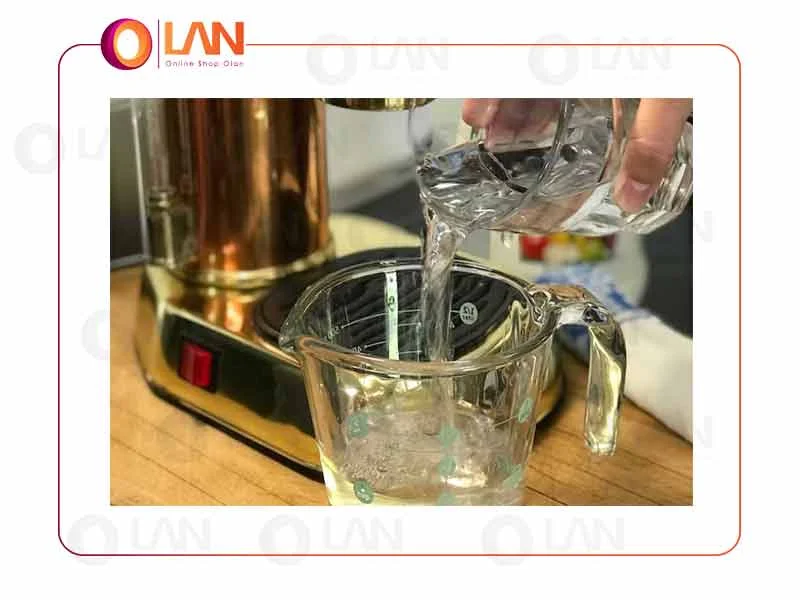 8- حالا باید محلول بدست آمده از ترکیب سرکه و آب را درون ظرف قهوه ساز بریزید.