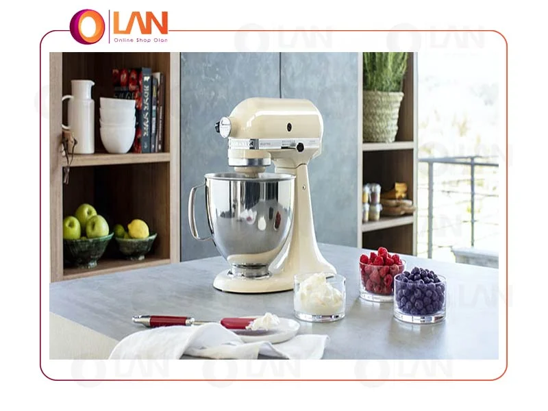 همزن کاسه ای (Stand Mixer): این نوع همزن قدرتمندتر و سنگین تر است و برای کارهای سنگین تر و طولانی مدت مانند ورز دادن خمیر نان، هم زدن مقادیر زیاد مواد، و تهیه مرنگ های پایدار ایده آل است. همزن های کاسه ای معمولاً دارای سه پره اصلی هستند: