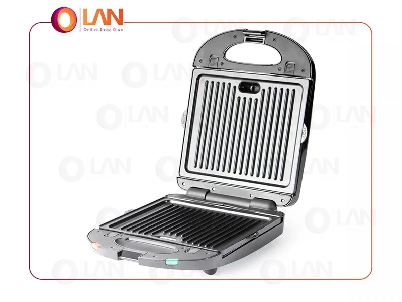 چراغ نشانگر و قفل ایمنی: این مدل نیز دارای چراغ نشانگر برای اطلاع از وضعیت دستگاه و قفل ایمنی برای محکم بسته شدن صفحات در حین پخت است. این ها ویژگی های استانداردی هستند که در هر ساندویچ ساز خوبی باید وجود داشته باشند.