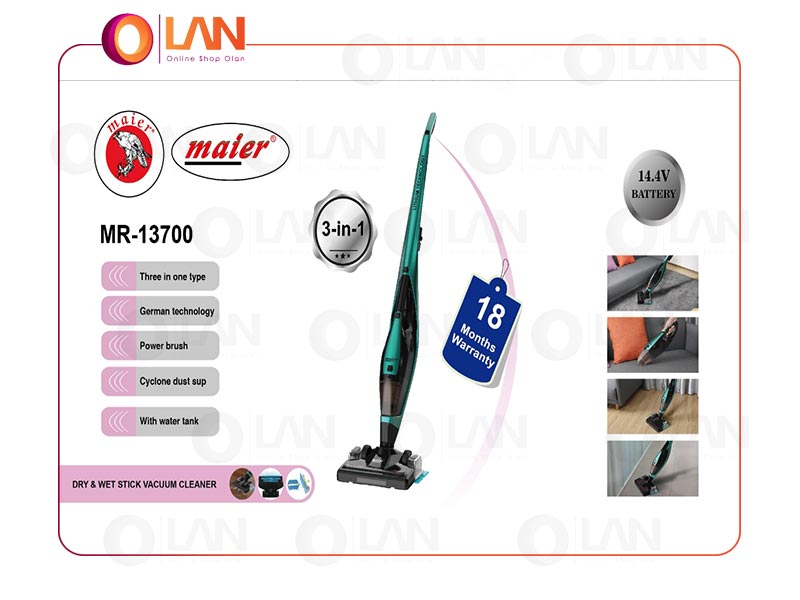 شرکت مایر با تولید این جارو شارژی فوق العاده به کاربران خود اجازه می دهد تا از کارکردی بی سیم و با قدرت بالا بدون محدودیت از آن استفاده کنند. جارو شارژی مایر مدل MR-13700 از فناوری های زیادی پشتیبانی می کند تا بهترین عملکرد را به شما ارائه دهد. جارو شارژی مایر مدل 13700 با یک موتور قدرتمند طراحی شده و توان 70 وات را هنگام کار ارائه می دهد. این قدرت موتور برای تمیز کردن کف زمین، فرش و سطوح های دیگر مناسب است. این جارو شارژی مایر دارای یک باتری لیتیومی سبک با عمر طولانی است که دارای توان 2000 میلی آمپر است. این نوع باتری ها در مقایسه با باتری های دیگر بسیار سبک و بوده و دارای خروجی بیشتری هستند. این باتری در 3 تا 4 ساعت کاملا شارژ می شود و می توان 36 دقیقه با آن کار کرد. این باتری لیتیومی سازگار با محیط زیست است و کارایی بالایی را به شما ارائه می دهد.