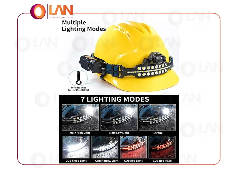 سنسور حرکت و 7 حالت روشنایی: پروژکتور پیشانی LED دارای 7 حالت کار است: 3 حالت نور اصلی (بالا/کم/متوسط). چهار حالت COB: نور سفید، نور قرمز (قوی/چشمک زن) می باشد. برای روشن/خاموش کردن نور، به راحتی دست را تا 15 سانتی متر تکان دهید. نور اصلی بزرگ نمایی به روشن شدن مناطق دورتر کمک می کند و نورافکن COB روی نورپردازی با زاویه باز 270 درجه به خوبی کار می کند. اطمینان حاصل کنید که از این کمک عالی برای تعمیر ماشین، کمپینگ، دویدن، دوچرخه سواری، شب گردی، مطالعه، فعالیت های تفریحی در فضای باز غافل نشوید.