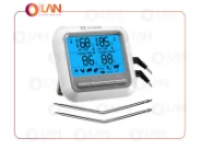 دماسنج های دیجیتالی از محصولات جدید در آشپزخانه می باشد که دمای غذاهای مختلف را برای شما اندازه گیری می کنند، این محصولات به شما کمک می کند که از بهداشت غذا مطمئن باشید و یک پروسه پخت دقیق و مناسب را برای پخت هر غذا داشته باشید. پخت ناکامل گوشت می تواند باکتری های درون این ماده غذایی را به انسان انتقال دهد بنابراین پخت غذا یک موضوع حائز اهمیت است که دماسنج های دیجیتالی می توانند در این موضوع به شما کمک کنند. دماسنج دیجیتالی CP063A از برند HABOR یک محصول با قابلیت های فراوان است که می تواند در پخت و آماده سازی غذاهای مختلف به شما کمک کند و کار آشپزی را به یک امر ساده و لذت بخش تبدیل نماید. اولین موردی که در این دماسنج دیجیتال توجه ما را جلب می کند استفاده دو گانه از آن می باشد، این محصول بر خلاف بسیاری از دماسنج ها دو میله برای اندازه گیری دمای غذا می باشد و شما در حین آماده کردن غذا می توانید به طور همزمان دو غذای مختلف و یا دو تکه از یک غذا را بسنجید و دمای آن ها را اندازه بگیرید. روی صفحه نمایشگر این محصول به طور جداگانه دمای هر دو میله نشان داده می شود و می توانید آن ها را مشاهده نمایید.