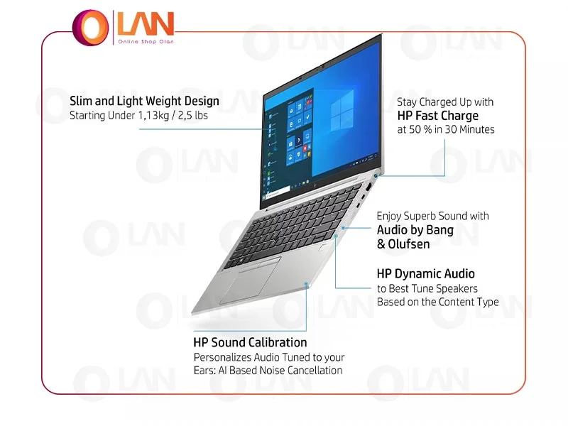 در بخش عملکرد و قلب این لپ تاپ اچ پی مدل EliteBook، پردازنده ی Core i5 – 1135G7 از نسل یازدهم اینتل قرار گرفته است که یک تراشه ی میان رده با مصرف انرژی بهینه محسوب می شود و برای محیط های کاری مدرن کاملاً ایده آل است. این پردازنده با معماری کارآمد خود، توانایی مدیریت چندوظیفگی سنگین، اجرای نرم افزارهای اداری، مدیریت پروژه های سبک برنامه نویسی و تحلیل داده های معمول را با سرعت و واکنش پذیری بالایی دارد و به هیچ عنوان کاربر را در انجام وظایف روزمره دچار مشکل نمی کند. در کنار این پردازنده، 16 گیگابایت حافظه ی رم تعبیه شده است که استانداردی طلایی برای مالتی تسکینگ در سال های اخیر به شمار می رود؛ با این ظرفیت رم، کاربر می تواند به طور همزمان ده ها تب در مرورگر، نرم افزارهای سنگین کنفرانس ویدیویی و مجموعه ی آفیس را بدون افت سرعت اجرا کند و پایداری سیستم در محیط های تحت فشار را تضمین نماید. هرچند در مشخصات اشاره شده به رم DDR3 شده است، اما برای نسل یازدهم اینتل (1135G7)، این سیستم تقریباً به طور قطع از حافظه های پرسرعت تر DDR4 یا LPDDR4X بهره می برد که این تفاوت فنی به معنای پهنای باند و سرعت بالاتر در مقایسه با استاندارد منسوخ DDR3 است. همچنین، حضور یک حافظه ی ذخیره سازی 256 گیگابایتی از نوع SSD، سرعت بوت شدن سیستم و بارگذاری برنامه ها را به صورت آنی تضمین می کند و بخش مهمی از تجربه ی کاربری سریع و روان این لپ تاپ را تشکیل می دهد، گرچه برای کاربری هایی که نیاز به آرشیو حجم بالایی از فایل های ویدیویی یا پروژه های حجیم دارند، شاید نیاز به ارتقاء یا استفاده از فضای ابری یا ذخیره ساز خارجی احساس شود.