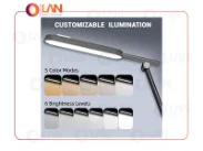 همانطور که در بالا به آن اشاره کردیم این چراغ مطالعه رومیزی TRONTORE دارای یک پایه اصلی می باشد که به صورت یک پد طراحی شده است. این پد دارای یک صفحه لمسی می باشد که می توانید از این طریق به راحتی چراغ مطالعه را کنترل کنید. بر روی این نمایشگر لمسی، گزینه های طراحی شده است تا راحت تر بتوانید نور و میزان شدت آن را تنظیم کنید. یکی از این گزینه های روی پد دکمه پاور می باشد که برای خاموش و روشن کردن چراغ مطالعه استفاده میشود. دیگری یک تایمر می باشد که به شما امکان می دهد چراغ مطالعه را به راحتی تنظیم کنید. تایمر خودکار یکی از گزینه های امنیتی این چراغ مطالعه است که به شما امکان می دهد خاموش شدن خودکار برای مدت 30، 60 یا 90 دقیقه تنظیم کنید. و اما عملکرد حافظه آن، هنگام روشن شدن مجدد چراغ مطالعه به حالت قبلی شما برمی گردد تا نور ترجیحی و دلخواه شما را تنظیم کند. با یکی دیگر از دکمه های آن می توان نورهای آن را تغییر دهید. این چراغ مطالعه دارای 5 حالت نوردهی می باشد که نورهای آن مهتابی، سفید، سفید گرم، زرد و زرد گرم می باشند. شما به دلخواه خود و با توجه به کاری که می کنید، می توانید آن ها را تغییر دهید. برای مثال می توانید برای کتاب خواندن و مطالعه از سفید گرم بهره ببرید و برای کارهای ریزه کاری مانند صنایع دستی، از رنگ سفید بهره ببرید.