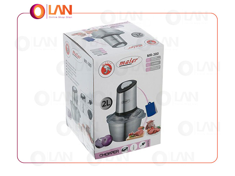 دارای دو سرعت متفاوت است که تنظیم آن توسط دکمه های تعبیه شده روی درپوش دستگاه امکان پذیر است. همچنین فضای بین ظرف استیل و درپوش بالا به صورت شیشه ای می باشد که امکان دیدن مواد غذایی داخل کاسه ی خردکن را به شما می دهد. همچنین ظرف دستگاه دارای دستگیره بوده که مانع از سرخوردن در دست می شود. تمام قسمت های دستگاه به راحتی از هم جدا می شود و در نتیجه قابلیت شستشوی آسان را فراهم می کند. توجه کنید که خرد کن برقی 2 لیترمایر مدل MR-380 برای خردکردن استخوان مرغ و گوشت اکیدا مناسب نمی باشد.